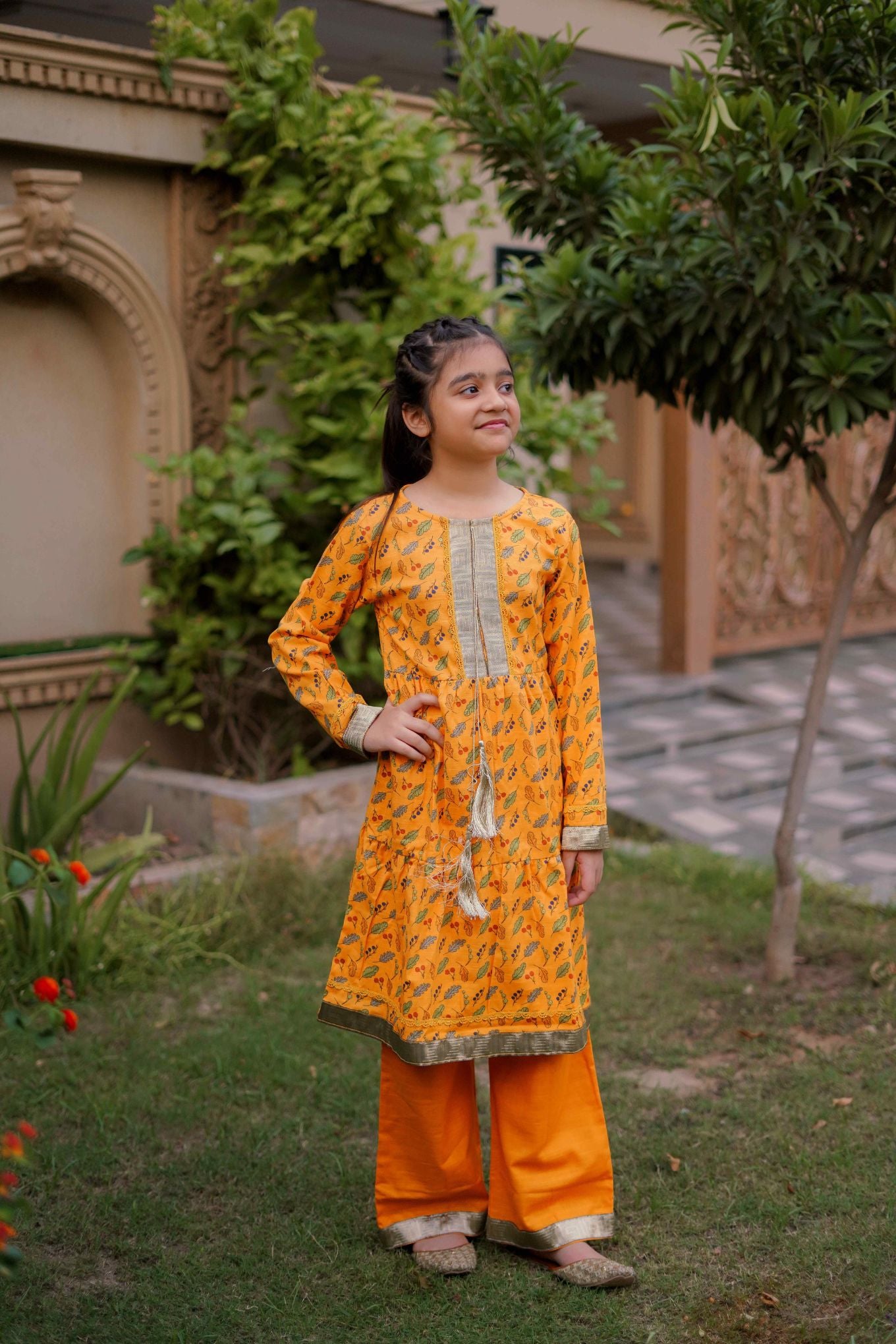 YELLOW Printed khaddar frock set,perfect for casual outongs.